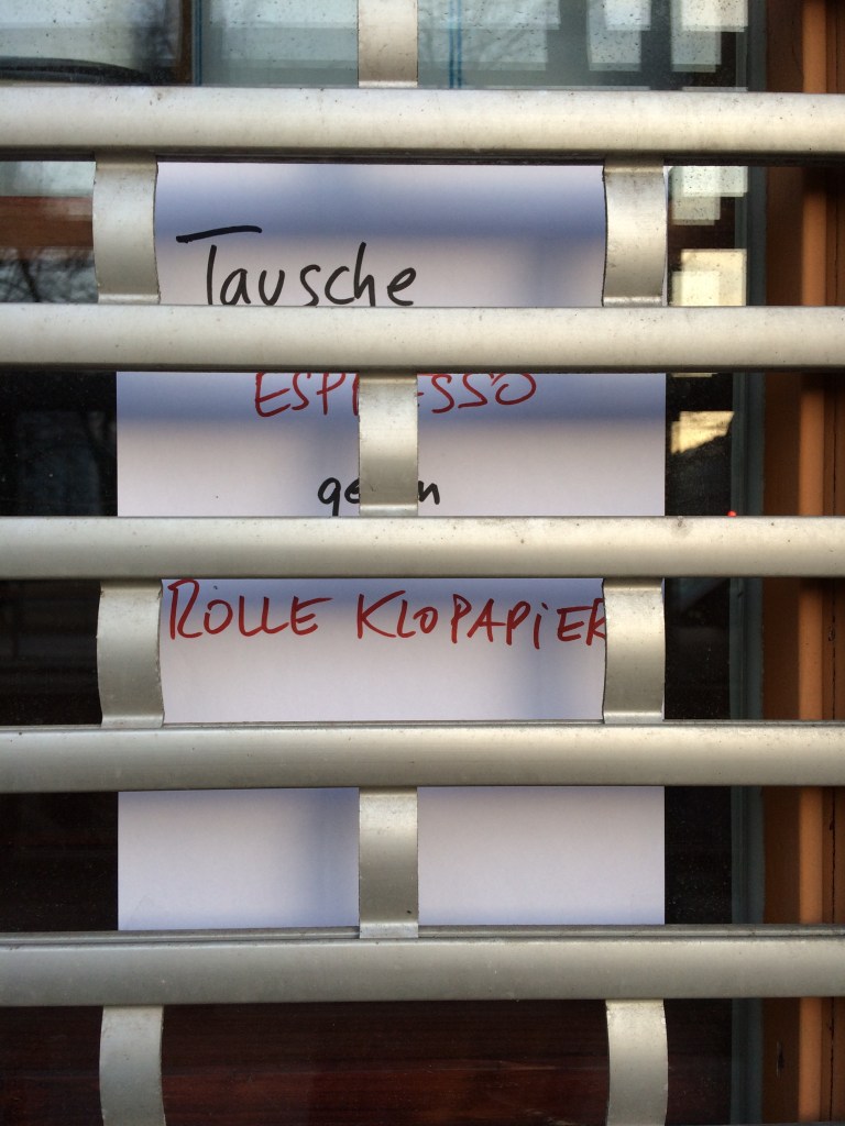 Heute Morgen heißt es, alle Geschäfte außer Baumärkte, Lebensmittelläden und Friseure seien geschlossen. Friseur – ein krisensicherer Beruf, wer hätte das gedacht. Ich muss ein Gerät bei Saturn umtauschen, morgen läuft die Rückgabefrist ab. Im Netz steht „Ihr Saturn hat geöffnet“. In gewisser Weise verkauft Saturn ja auch Dinge des täglichen Bedarfs, Smartphones, Computer, Kühlschränke. Dennoch rufe ich zur Sicherheit die Hotline an. „Hat Ihre Filiale am Alex heute geöffnet?“ frage ich. „Heute sind alle Märkte in Berlin geschlossen“, erfahre ich von einer freundlichen Frauenstimme. Ich trage mein Anliegen vor, was ist nun mit dem Umtausch? Tatsächlich kann mir die Frau nichts dazu sagen. „Rufen Sie ab 16:00 Uhr nochmal an. Dann haben wir dazu eine Regelung. Im Moment haben wir nichts.“