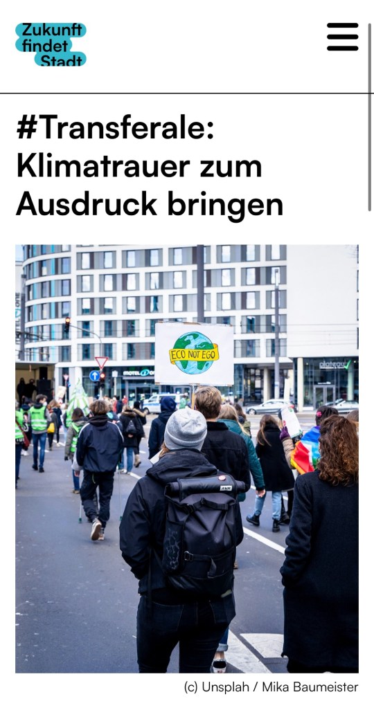 Am Freitag um 15 Uhr gibt es den Klimatrauer Schreibworkshop. Es geht um das freie Schreiben als künstlerische Methode des Fertigwerdens mit dem Schmerz, den die Klimakrise auslösen kann. Wofür sind wir trotzdem dankbar? In diesem Workshop erlauben wir uns, gut zu uns zu sein. Das Grundkonzept dafür habe ich vor zwei Jahren mit Anna Eckert gemeinsam entwickelt. Von ihr habe ich das schöne Joan Didion-Zitat.